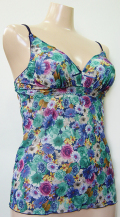 ソフトでノンワイヤーなのに、ちょっと寄せて上げるサラサーテ ソフトブラキャミソールです。生地は華やかなコンピュータープリントの軽密ニットで羽の様に軽い着心地です。別売りでお揃いの、ソフトブラ、ショーツ、タンガ、ヒップハンガーがあります。 ちょっと寄せて上げるサラサーテ、ノンワイヤーブラキャミソール サイズM(A70-D70,A75-C75に対応します。) ポリエステル100%