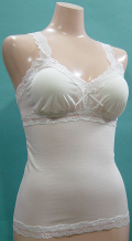 洗えるレーヨンシルク四季を通じて、柔かいさわり心地が、気持ちの良い天竺素材。花柄ストレッチレースも波カットでアウターに響きにくくなっています。ノンワイヤーソフトブラキャミ