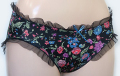 マイクロファイバー ツーウエイ素材にリリアンのリバティ調の花を鮮明にプリントしました。マイクロチュールのフリルも、かわゆいです。サイズM(ヒップ87-95) ポリエステル79%ポリウレタン21%