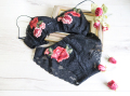 | 製品名 | 世界で1セットだけ ストレッチレース 紅薔薇モチーフ ブラック ノンワイヤーブラ・ソフトブラ ショーツ ペアセット #0006 |