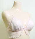 ノンワイヤーブラジャー・ノンワイヤーブラ・ソフトブラストライヴレースフリルソフトブラです。柔かいストライヴレースでアンダーバストにフリルを付けました。可愛いのですが、子供っぽくありません。サイズM(A70-D70,A75-C75に対応します。) ポリエステル100%別売りでお揃いのブラキャミソール、シヨーツ、タンガ、ヒップハンガーがあります。