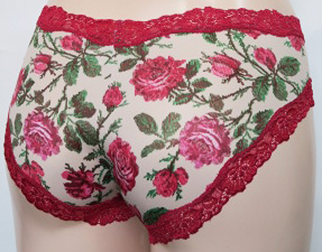 マイクロファイバー ツーウエイ素材にローズタピストリーの薔薇を鮮明にプリントしました。レースはすべてレッドでカルメンの様に情熱的に。