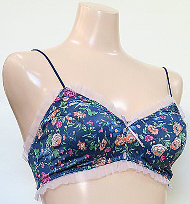 「[le miaou]キャッツ」 #0759 リリアン ツーウェイ ノンワイヤーブラ・ソフトブラ ネイビー裏br>パットは取り外しできます。裏は綿100%ニットでお肌にやさしいです。後ろホックは2列2段になります。
