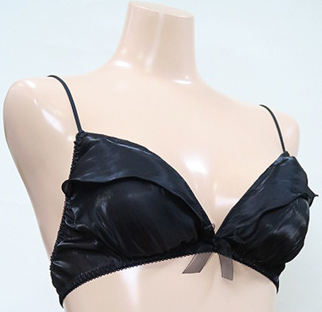「[le miaou]キャッツ」 #0761 プラチナ割繊サテン ノンワイヤーブラ・ソフトブラ ブラックとお揃いの別売りショーツ